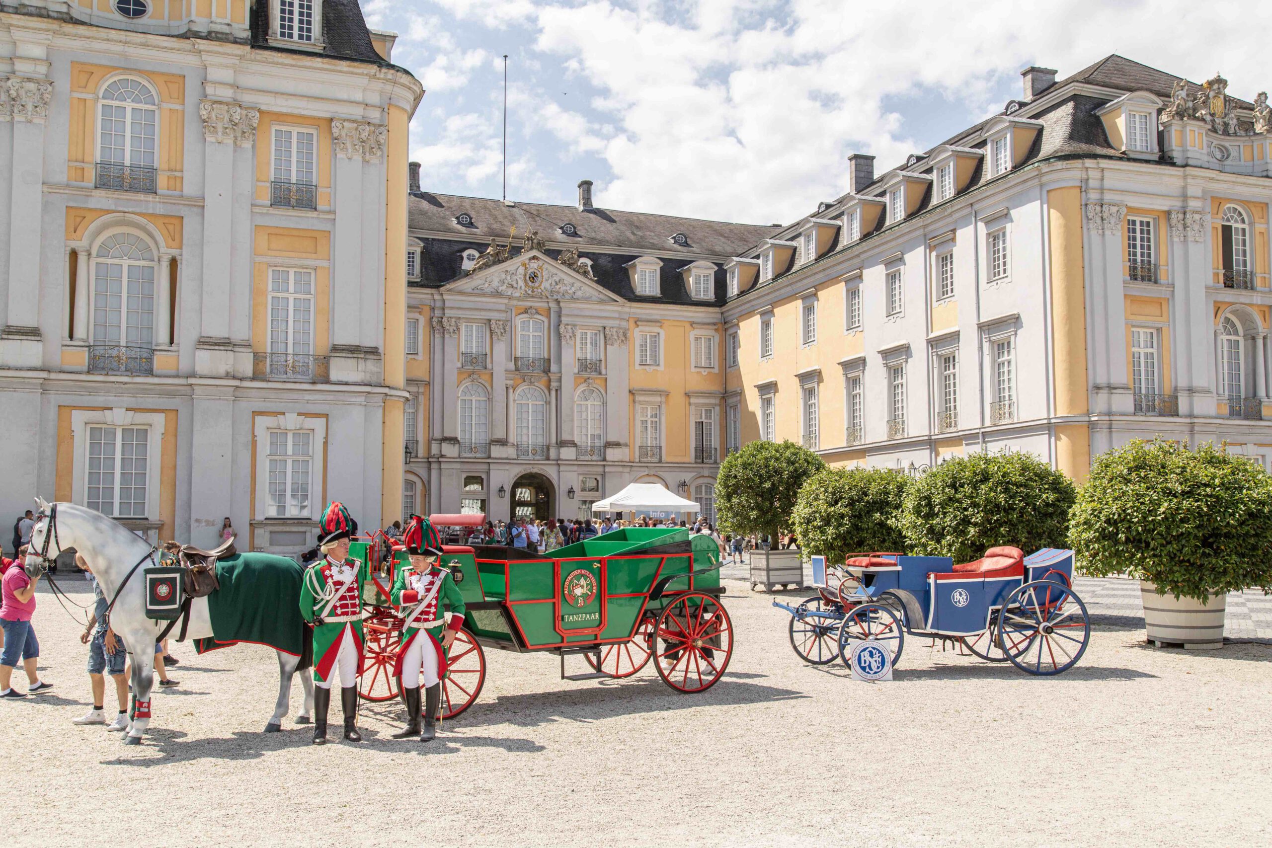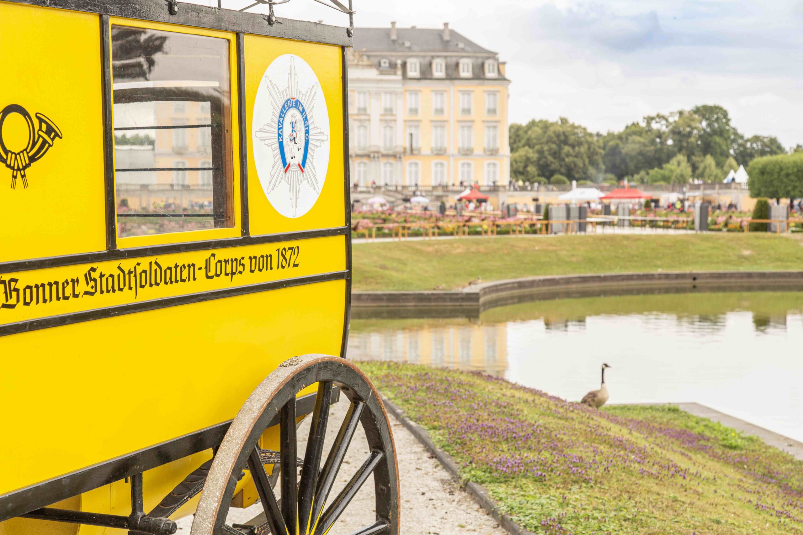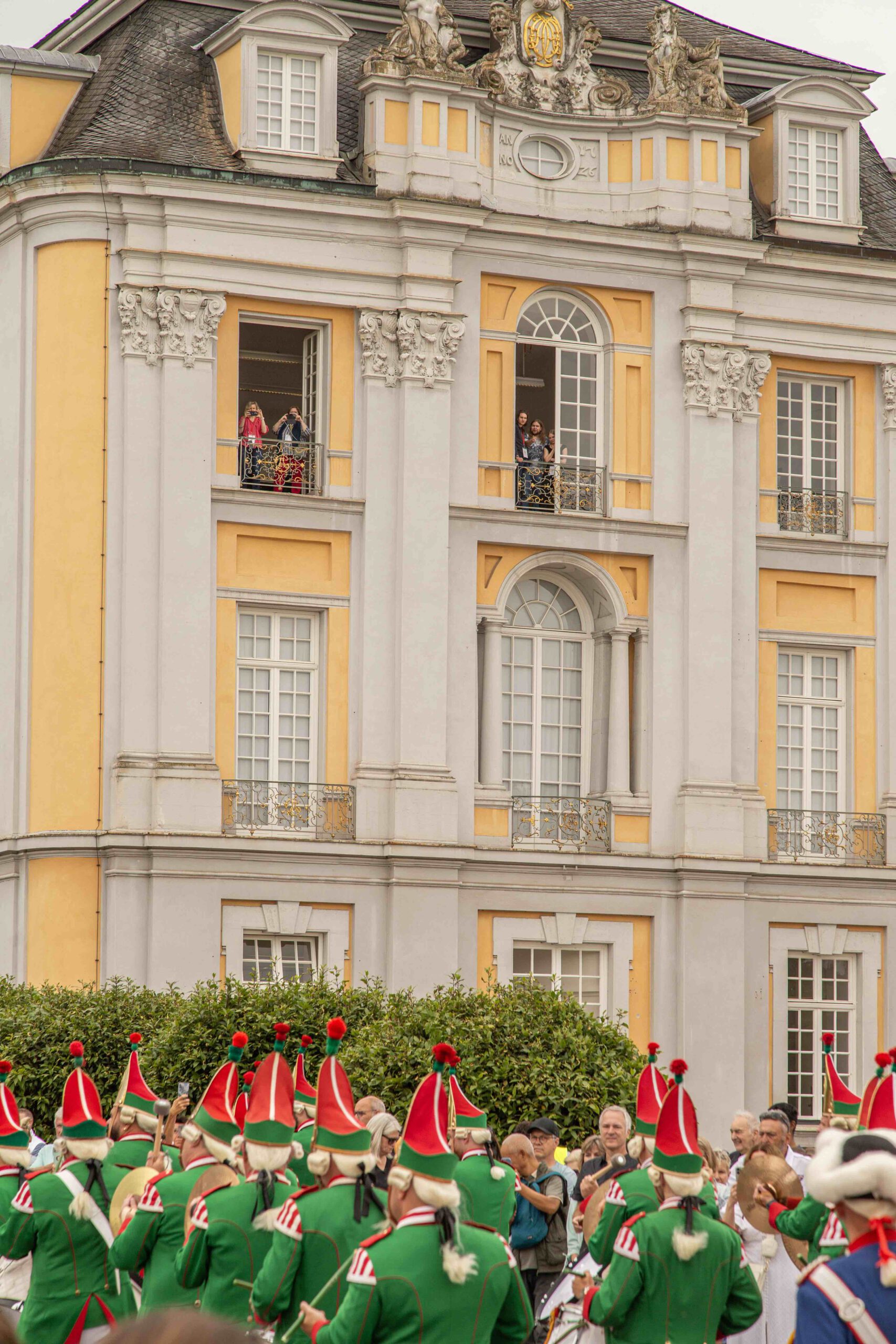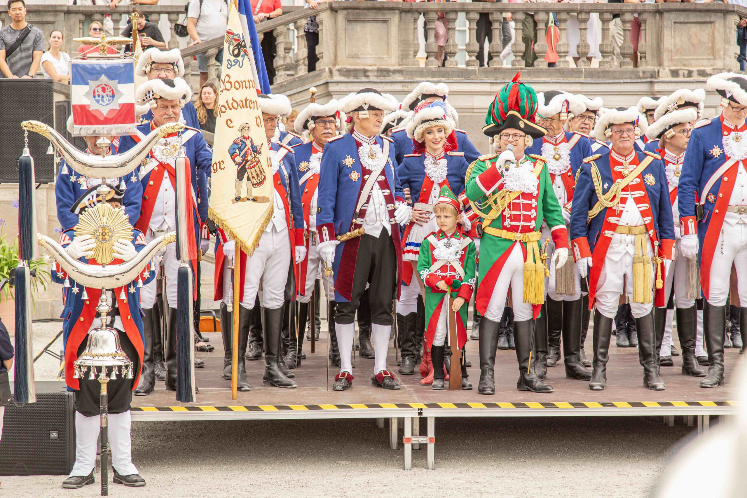 Das Bonner Stadtsoldaten-Corps von 1872 e.V. und die Altstädter Köln 1922 e.V. sind gemeinsam als Kurfürstlich/Kurkölnischer Knubbel Mitglied im „Freundeskreis Brühler Schlösser und Gärten e.V.“ Beiden Korps war es ein Anliegen, zum Gelingen des Aktionstags im Schlossgarten beizutragen: In „Großer Uniform“ stellten die beiden Traditionskorps Wachen an den Eingängen zum Schloss und flanierten im Schlossgarten. Mit „klingendem Spiel“ zogen die beiden Regimentsspielmannszüge gemeinsam auf. Historische Kutschen aus dem Bestand der Traditionskorps rundeten das farbenprächtige Bild vor dem Schloss ab.