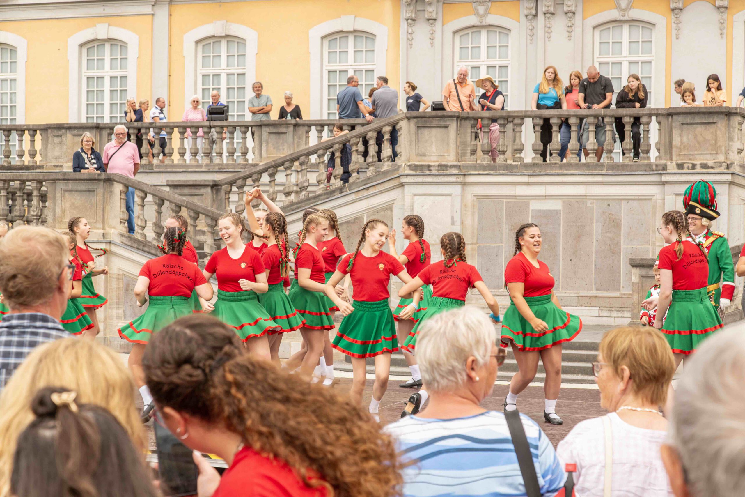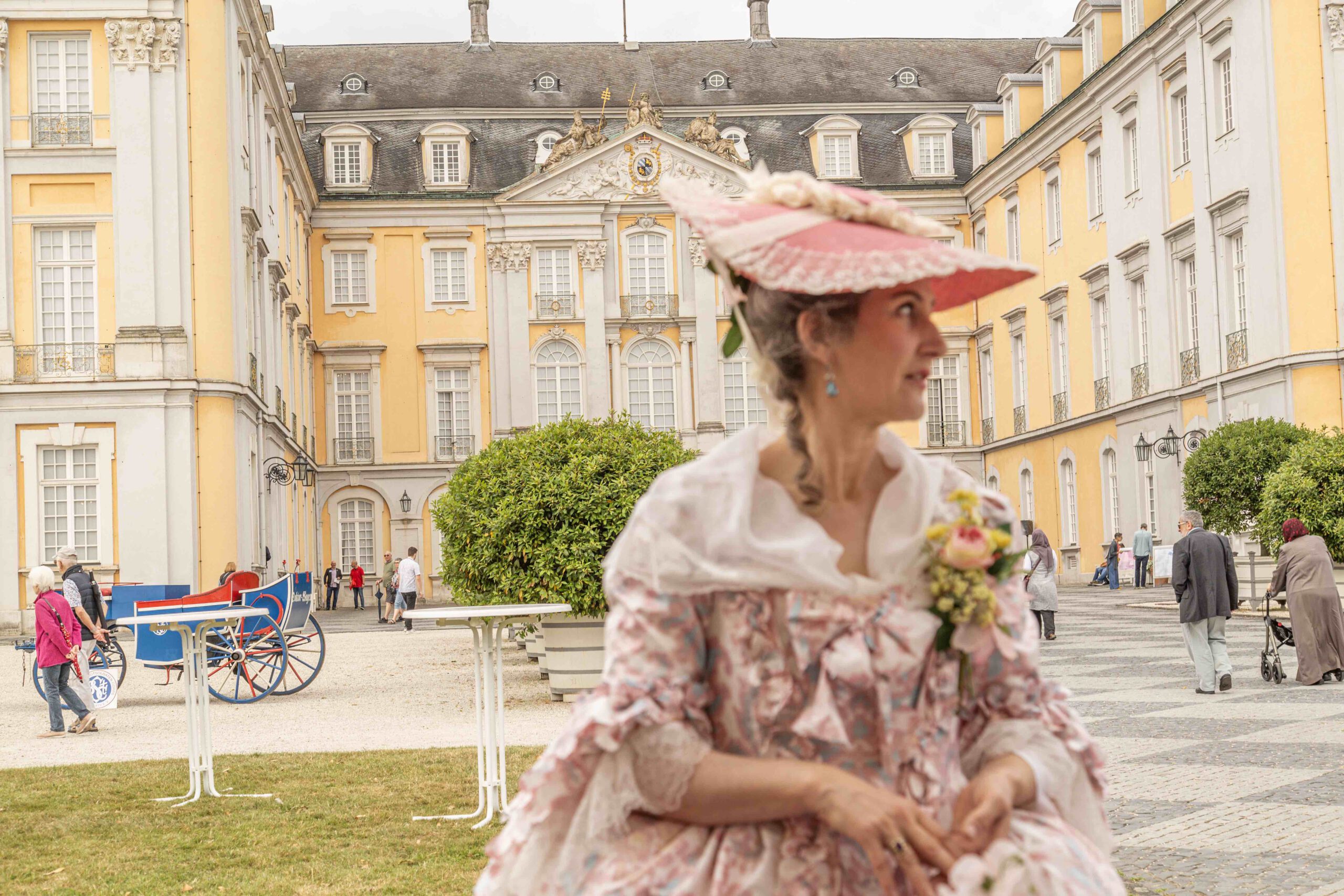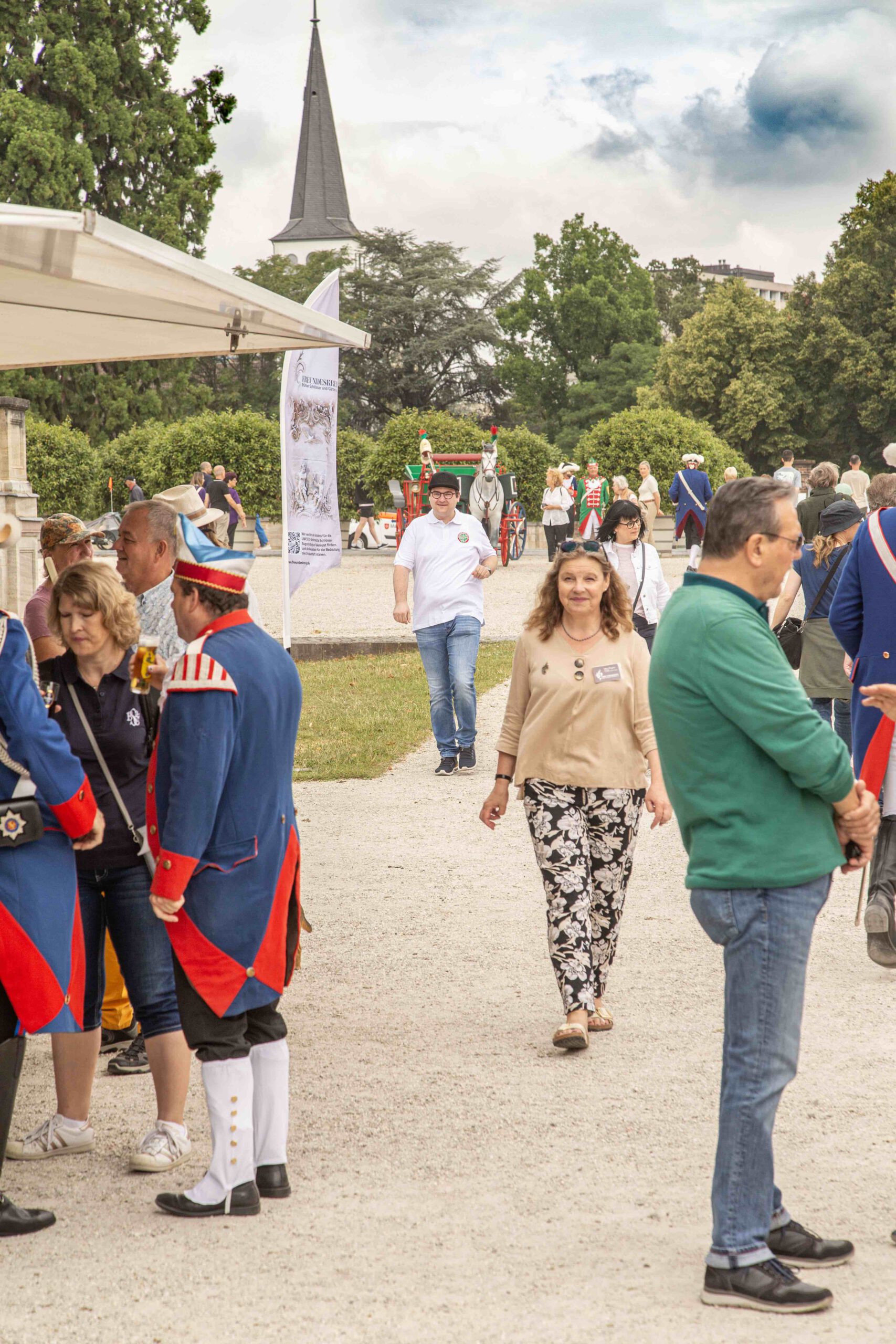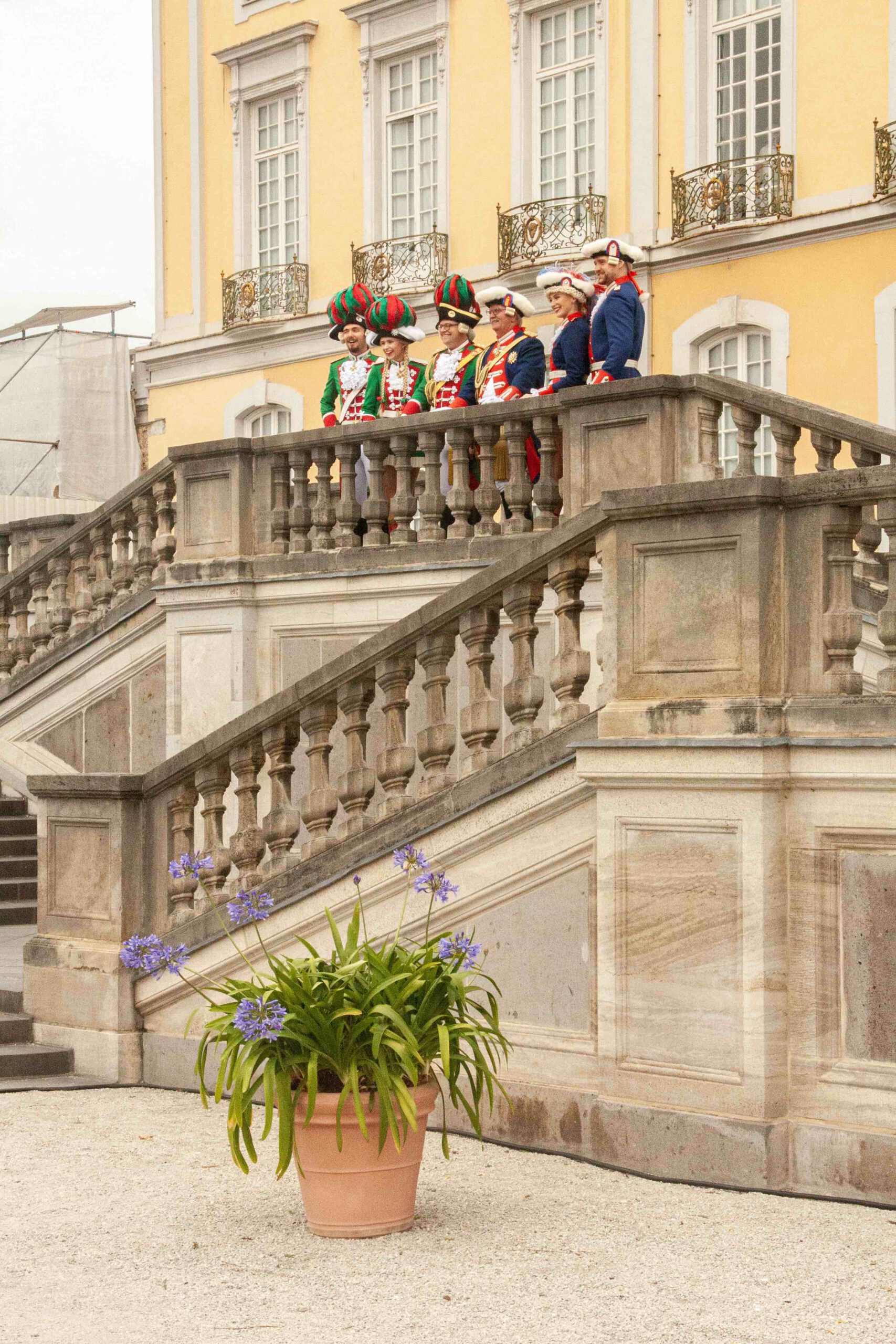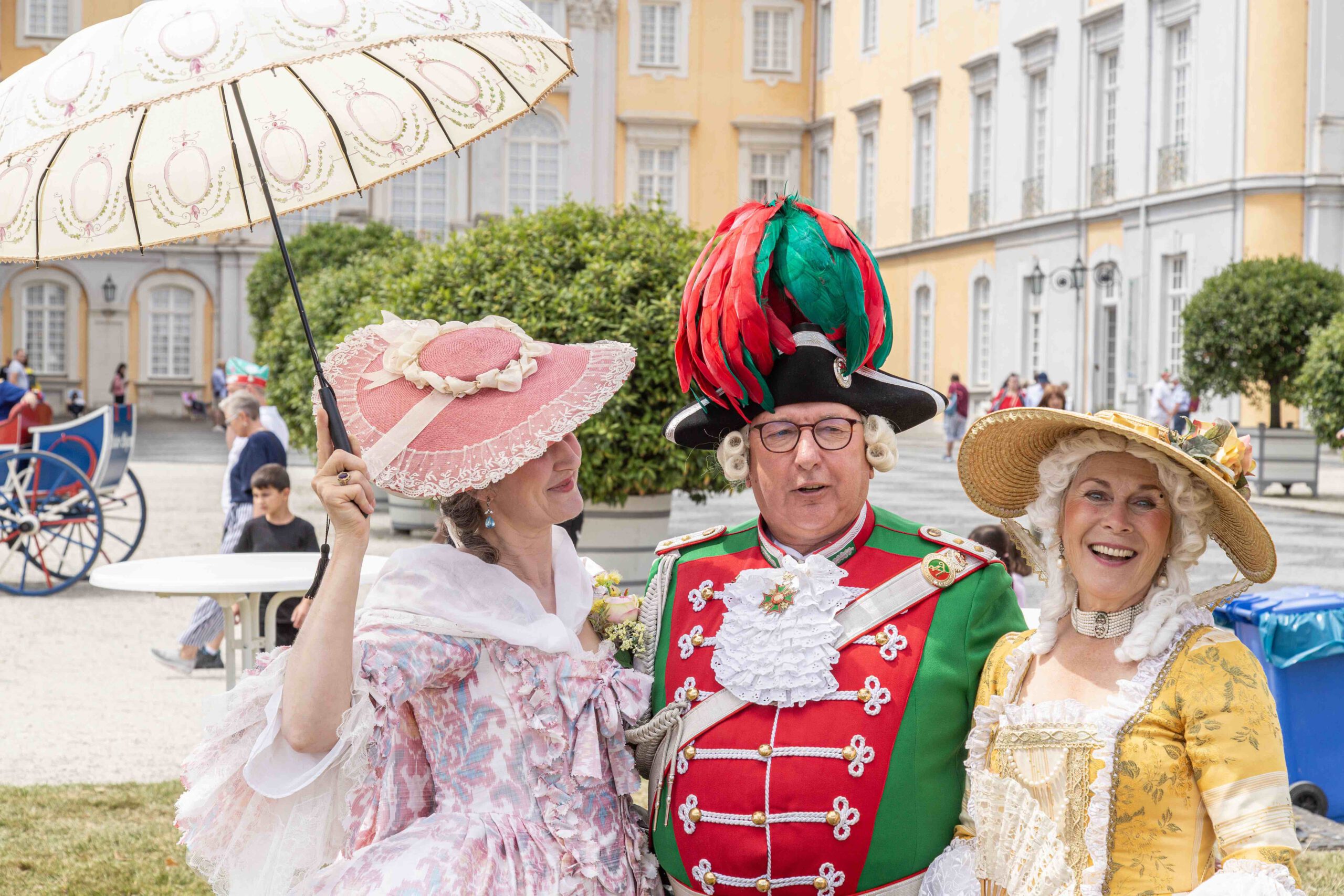 Das Bonner Stadtsoldaten-Corps von 1872 e.V. und die Altstädter Köln 1922 e.V. sind gemeinsam als Kurfürstlich/Kurkölnischer Knubbel Mitglied im „Freundeskreis Brühler Schlösser und Gärten e.V.“ Beiden Korps war es ein Anliegen, zum Gelingen des Aktionstags im Schlossgarten beizutragen: In „Großer Uniform“ stellten die beiden Traditionskorps Wachen an den Eingängen zum Schloss und flanierten im Schlossgarten. Mit „klingendem Spiel“ zogen die beiden Regimentsspielmannszüge gemeinsam auf. Historische Kutschen aus dem Bestand der Traditionskorps rundeten das farbenprächtige Bild vor dem Schloss ab.