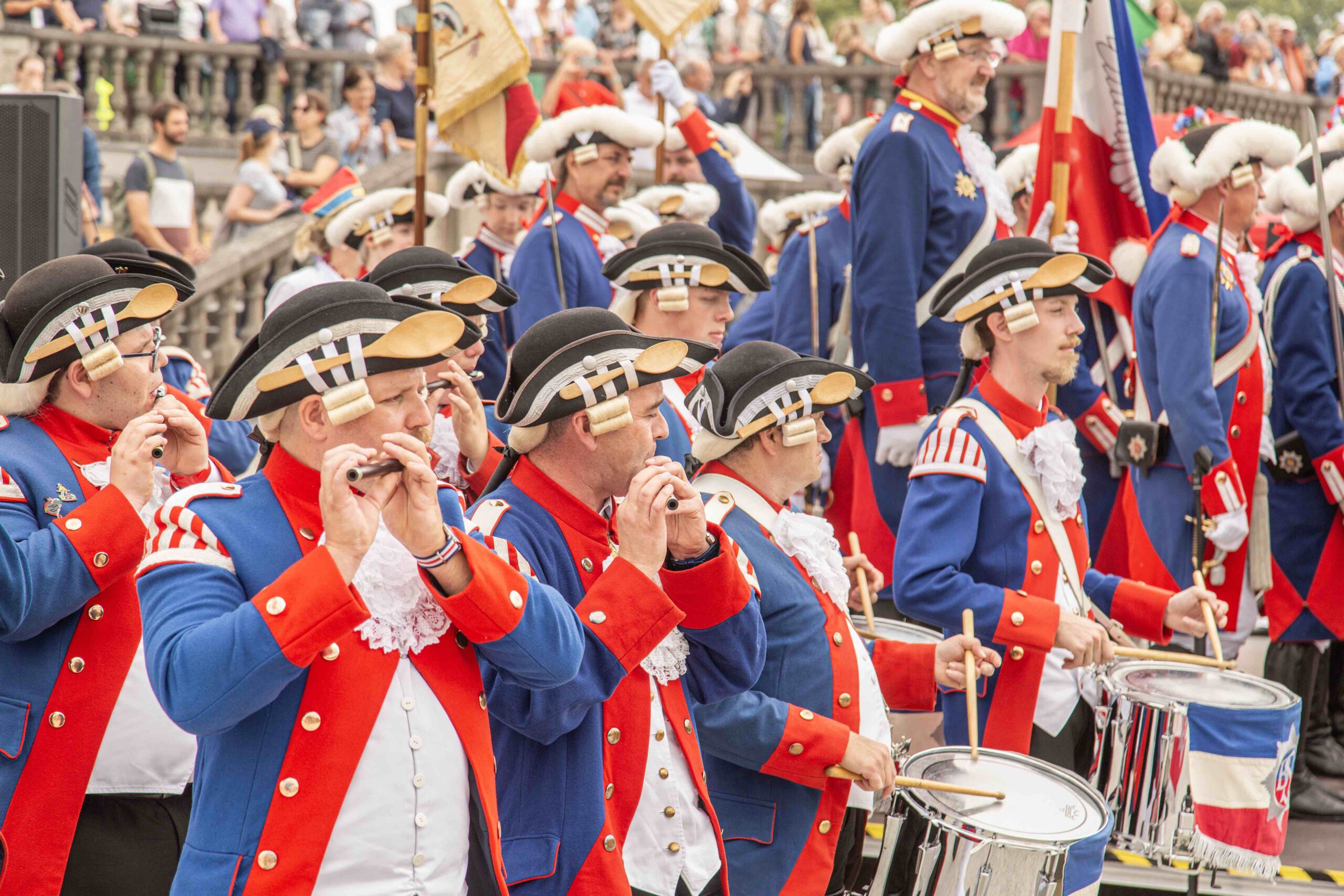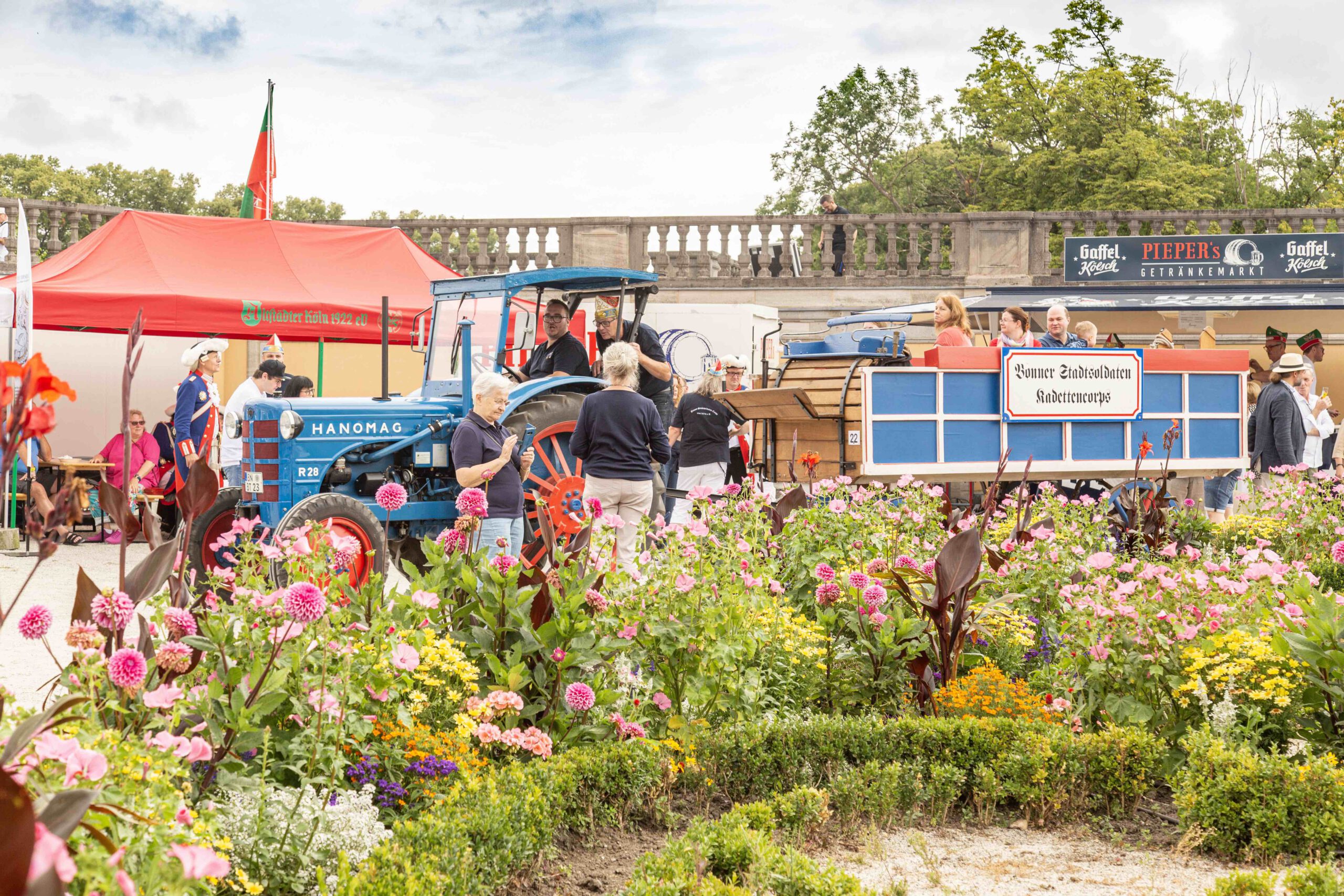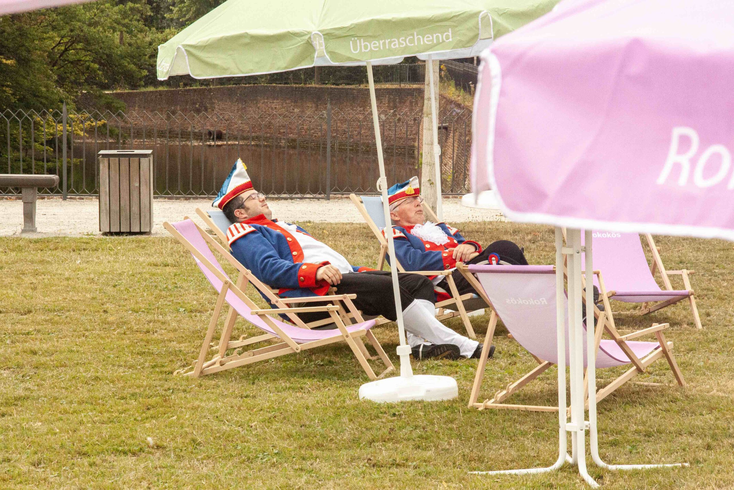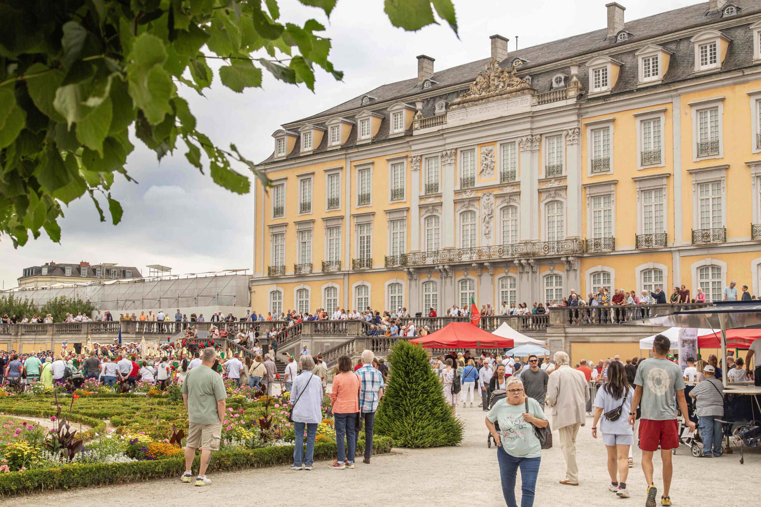 Das Bonner Stadtsoldaten-Corps von 1872 e.V. und die Altstädter Köln 1922 e.V. sind gemeinsam als Kurfürstlich/Kurkölnischer Knubbel Mitglied im „Freundeskreis Brühler Schlösser und Gärten e.V.“ Beiden Korps war es ein Anliegen, zum Gelingen des Aktionstags im Schlossgarten beizutragen: In „Großer Uniform“ stellten die beiden Traditionskorps Wachen an den Eingängen zum Schloss und flanierten im Schlossgarten. Mit „klingendem Spiel“ zogen die beiden Regimentsspielmannszüge gemeinsam auf. Historische Kutschen aus dem Bestand der Traditionskorps rundeten das farbenprächtige Bild vor dem Schloss ab.