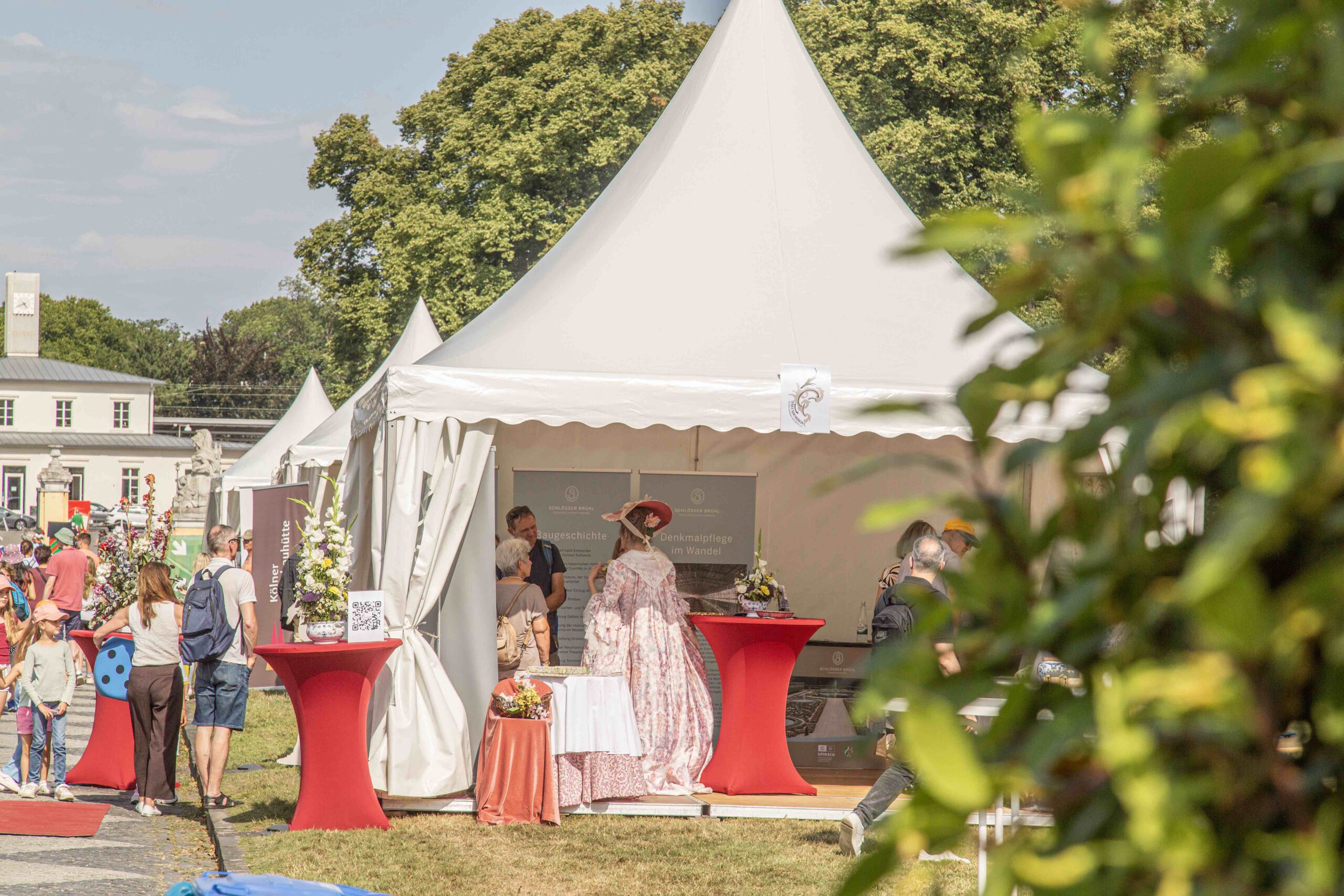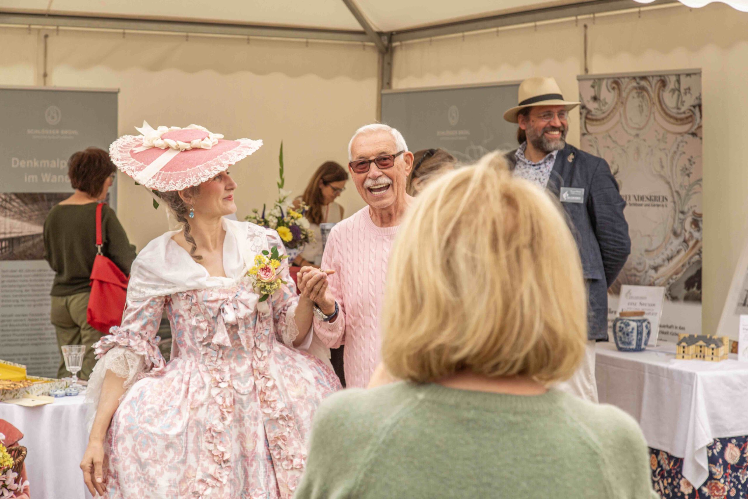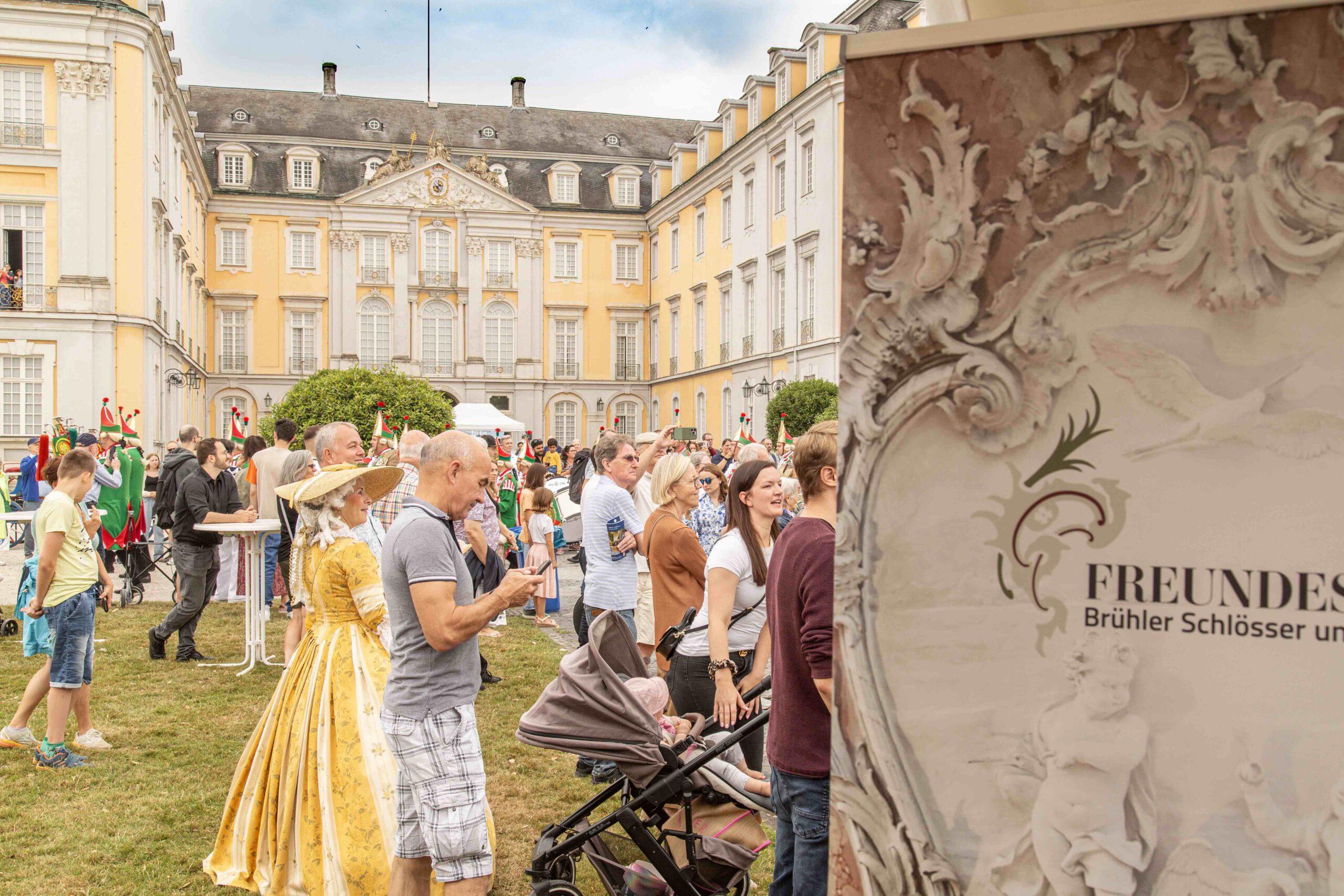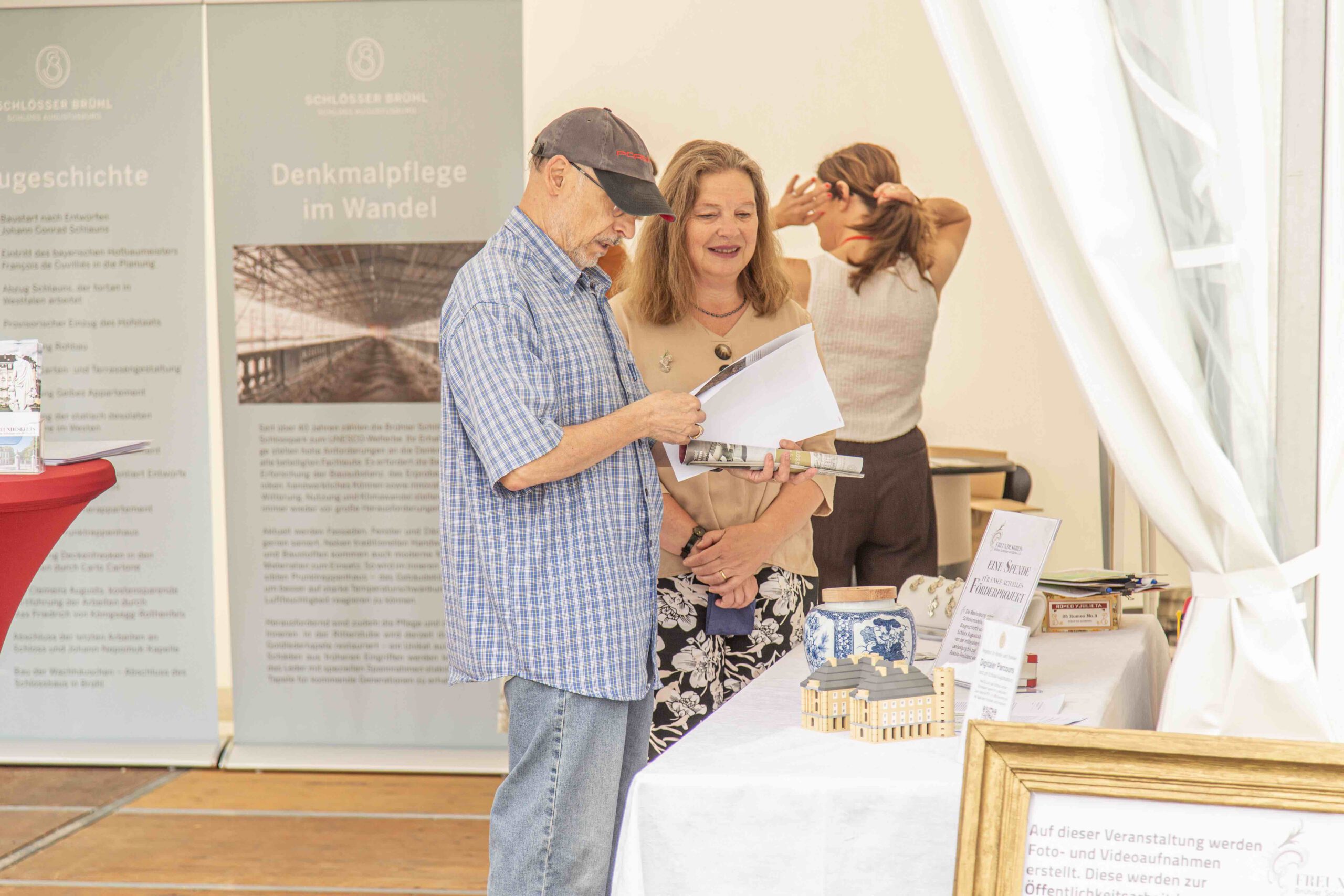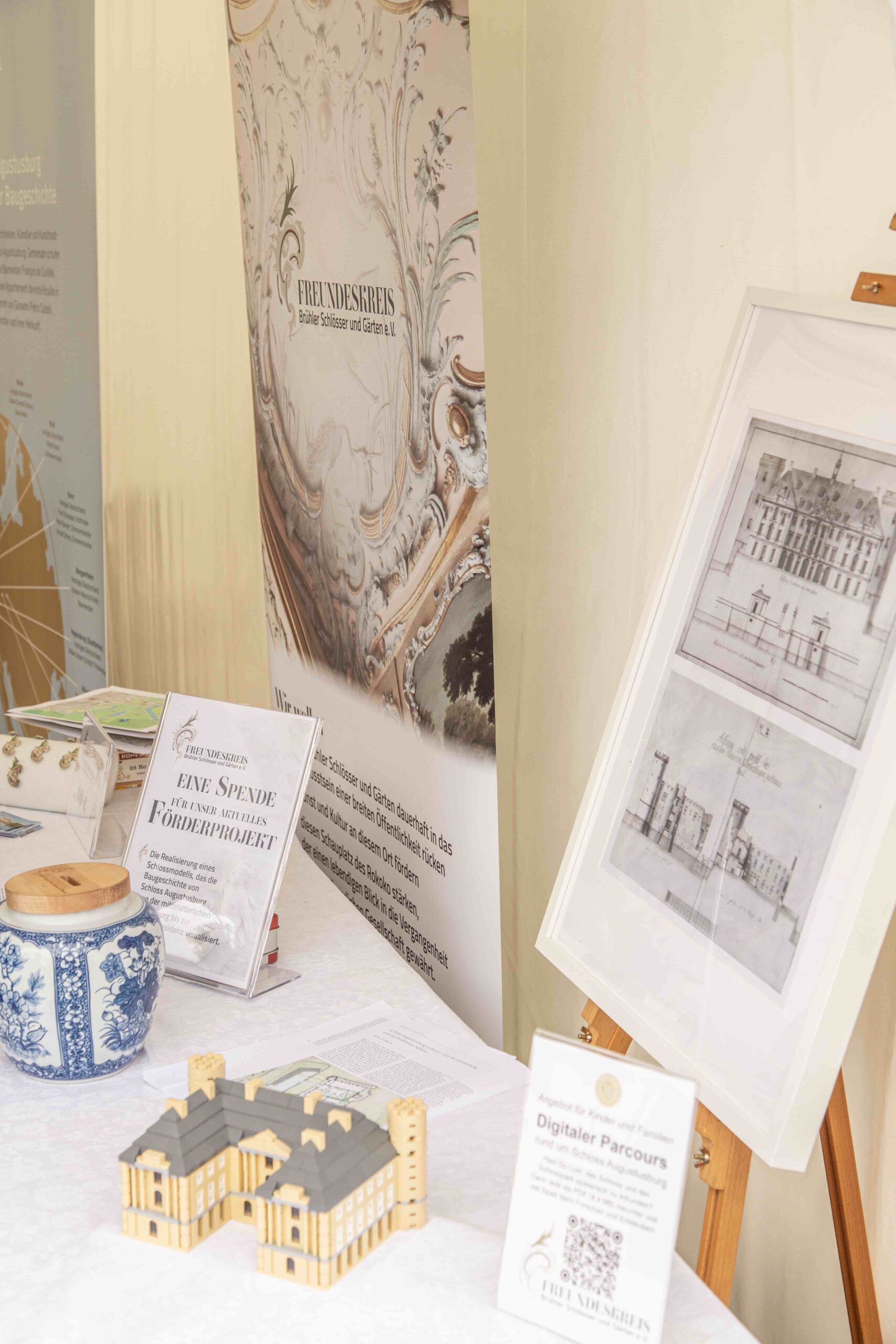 Der Freundeskreis präsentierte am Info-Stand der Brühler Schlösser sein neues Förderprojekt: Die Realisierung eines Schlossmodells, das die Baugeschichte von Schloss Augustusburg von der mittelalterlichen Landesburg bis zur Rokoko-Residenz visualisiert. Mehr Infos dazu finden Sie auch hier.